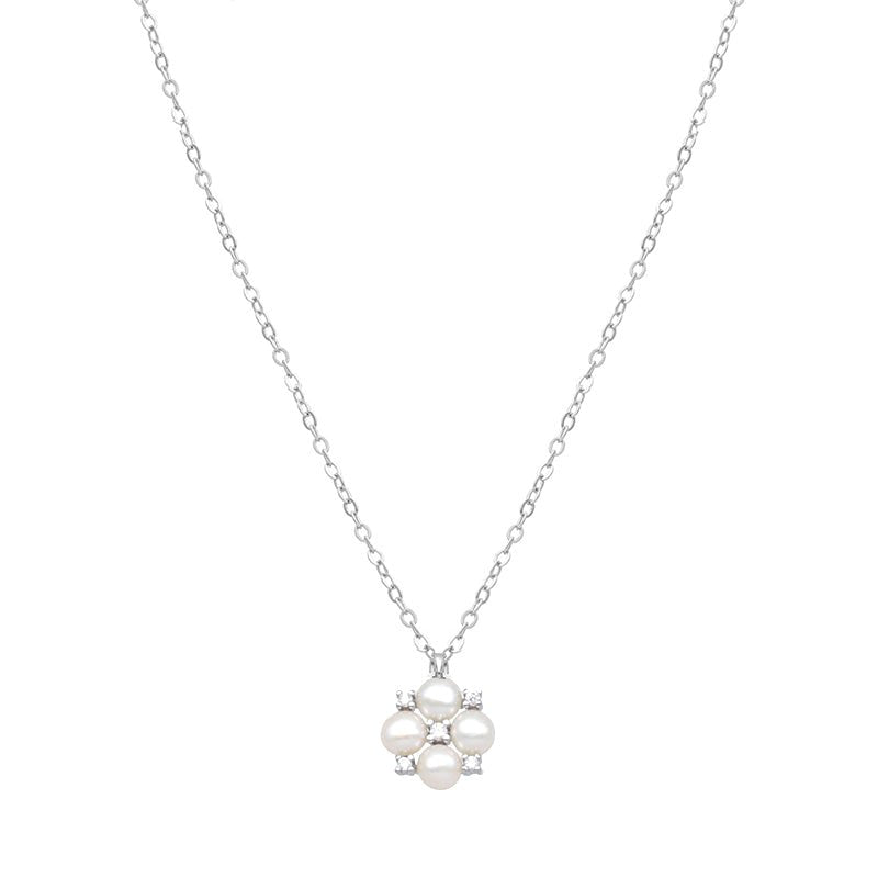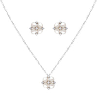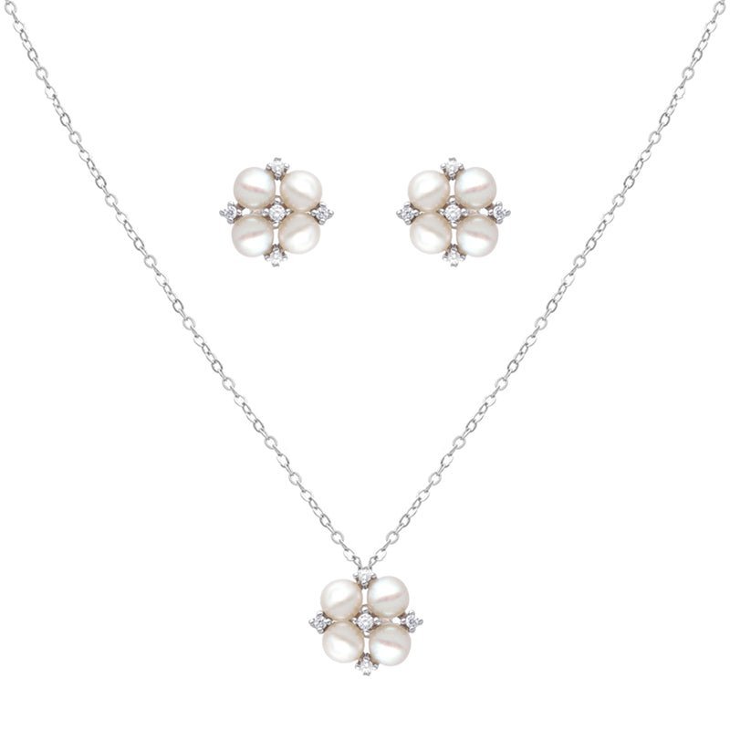 Conjunto Fio e Brincos em Prata com Pérolas e Zircónias