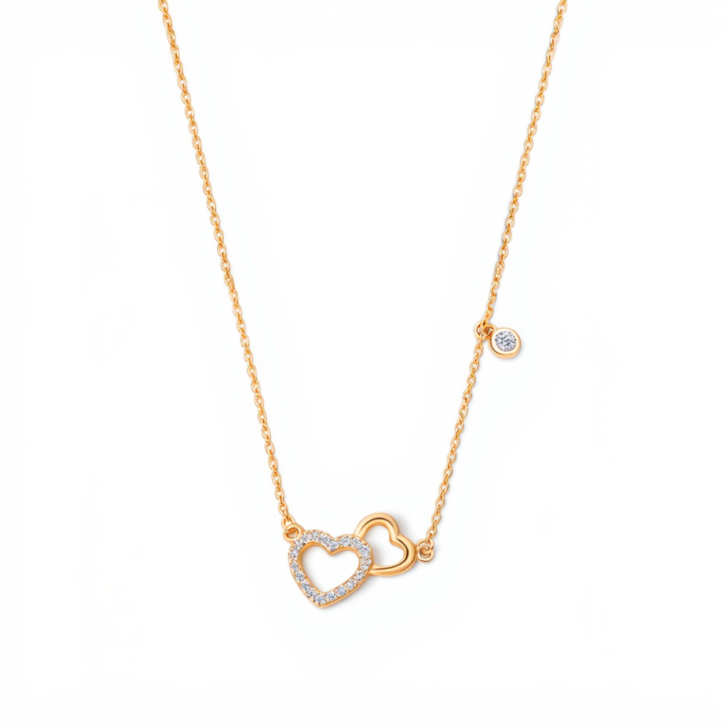 Fio Amor Eterno em Prata Dourada com Dois Corações