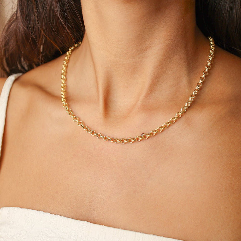 Este elegante fio de elos portugueses com efeito martelado é a perfeita fusão entre o estilo clássico da joalharia tradicional portuguesa e um acabamento moderno e texturizado. Composto por elos trabalhados em ouro que refletem a luz de forma singular graças ao seu efeito martelado, este fio é uma peça que se destaca pelo brilho e pela sofisticação discreta.