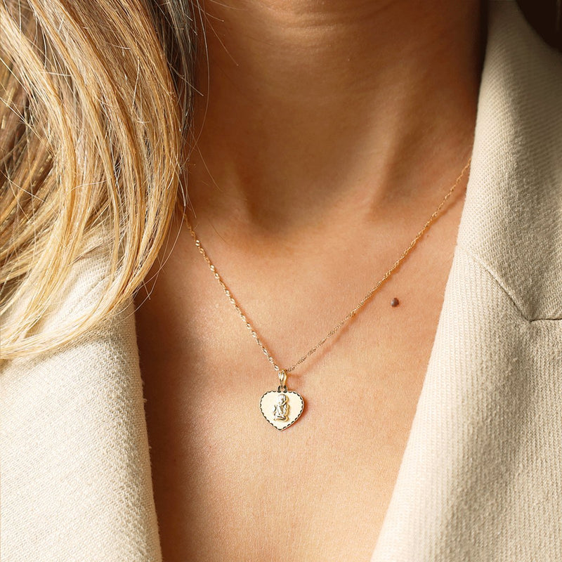 Fio em Ouro 19kl com Coração Anjo da Guarda (45cm)