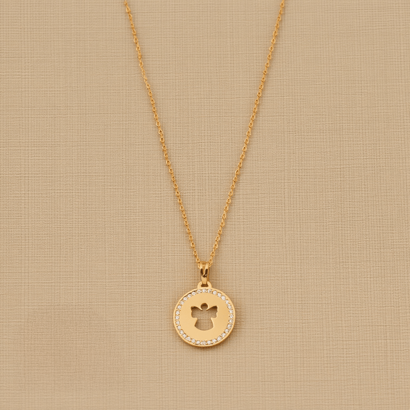 Fio em Ouro com Medalha Anjo cravejada de Zircónias