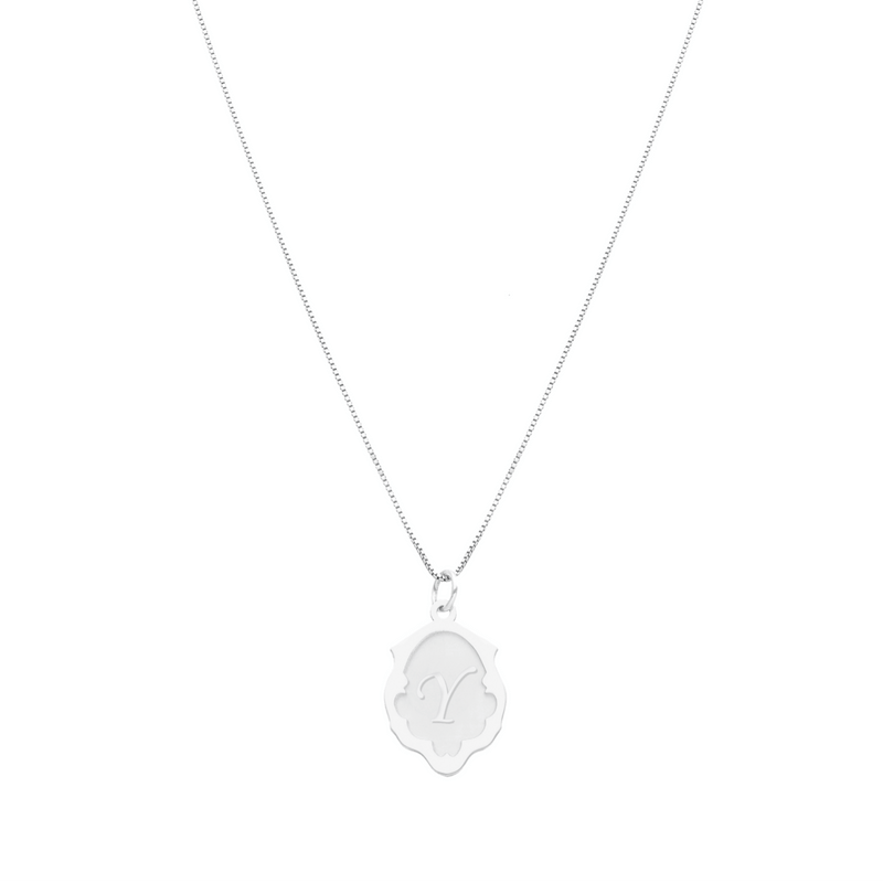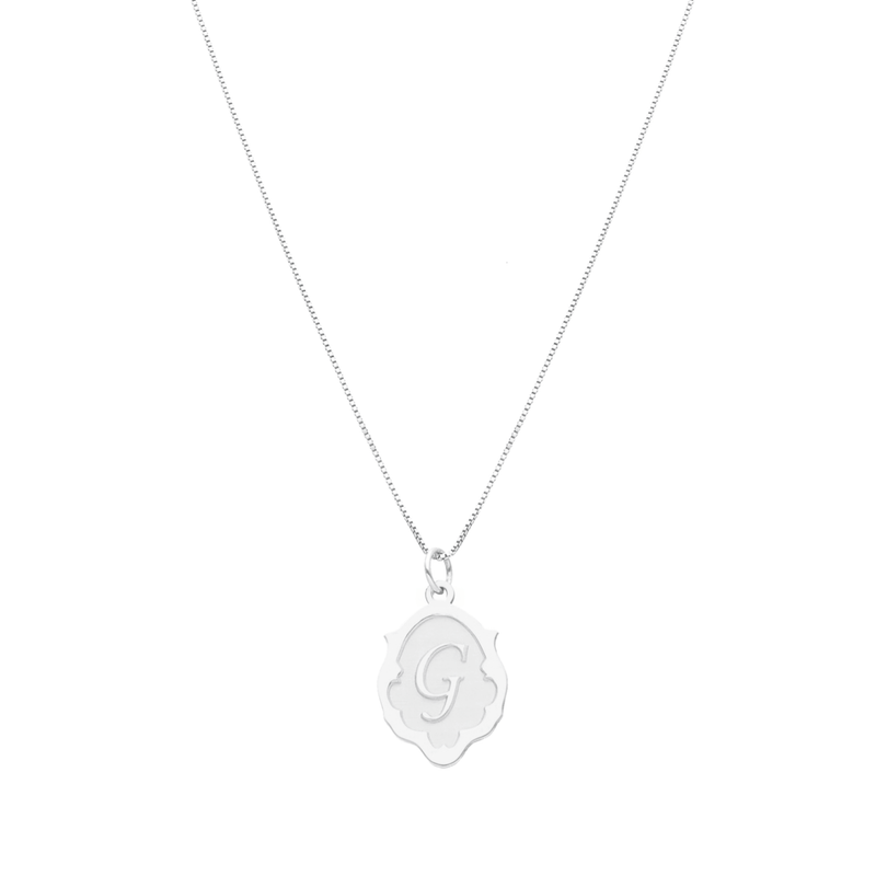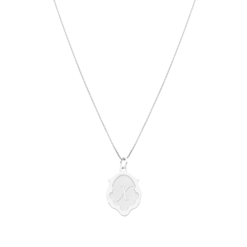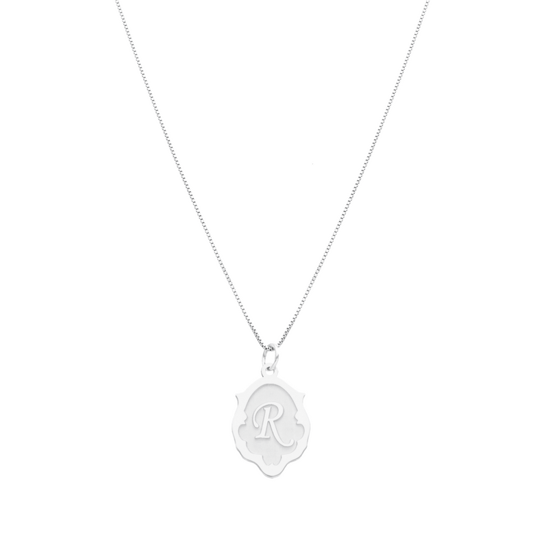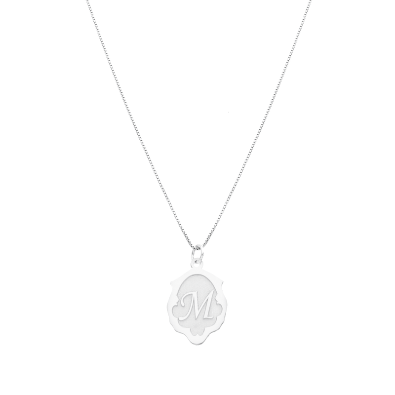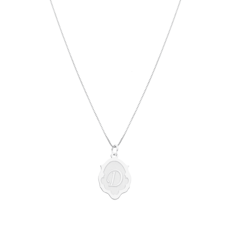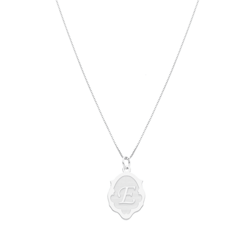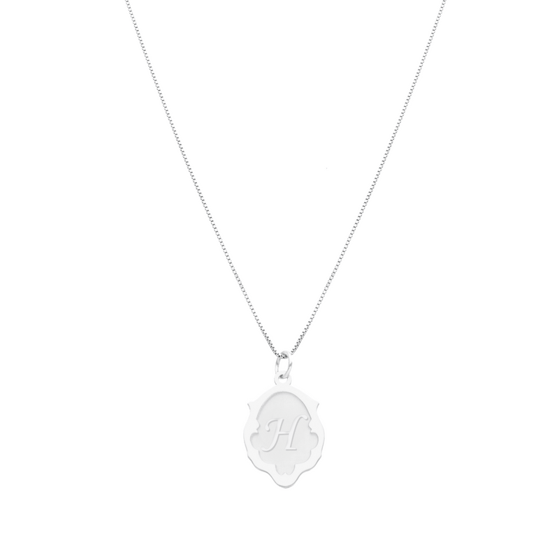 Este fio em prata branca com malha veneziana é uma verdadeira obra de arte, combinando sofisticação, personalização e um toque vintage. O destaque desta peça é o pendente oval estilizado, adornado com trabalhados clássicos e cuidadosamente desenhado com a inicial desejada, tornando cada joia única e especial.