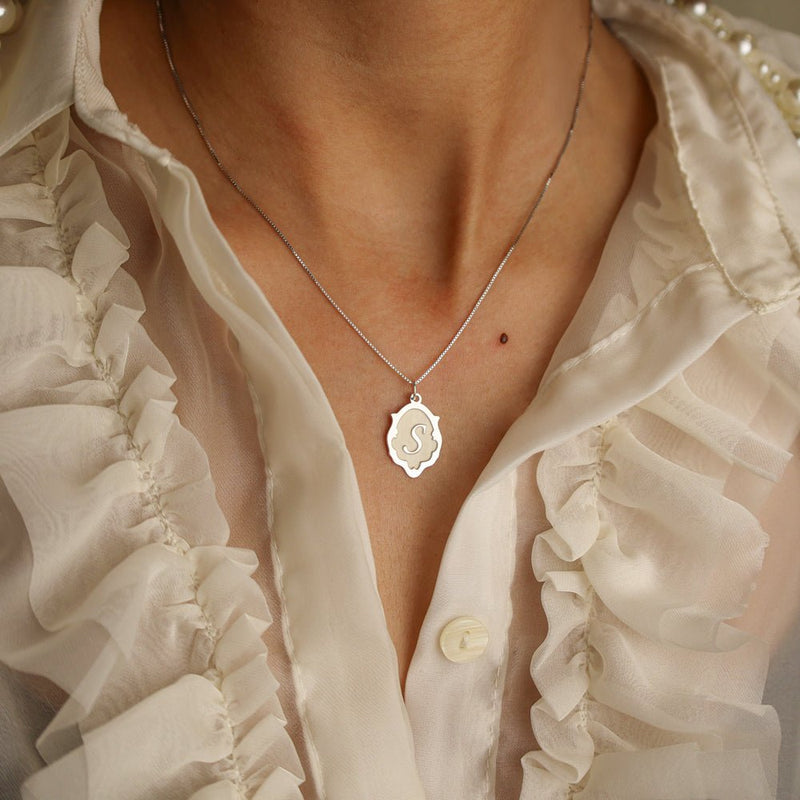 Disponível para todas as iniciais, este fio permite carregar consigo um símbolo pessoal ou oferecer alguém especial com um acessório significativo. Seja para uso diário ou ocasiões especiais, este fio em prata branca com pendente oval vintage e inicial personalizada é a expressão perfeita de elegância, exclusividade e herança artesanal.