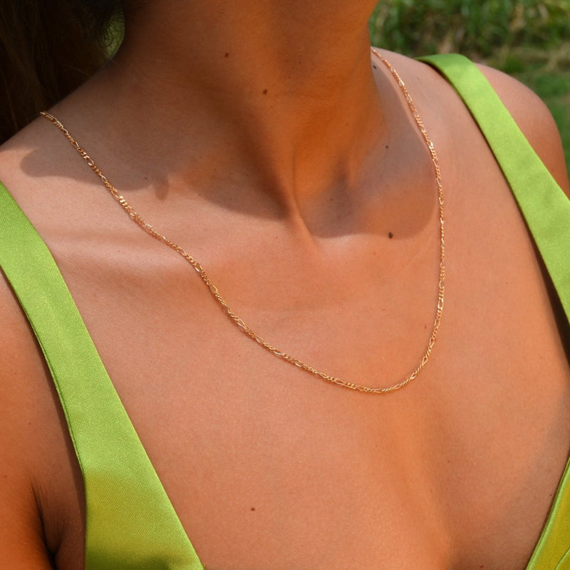 Este fio de ouro é a escolha perfeita para quem procura uma joia elegante e versátil. A sua malha 3x1 apresenta um padrão entrelaçado que lhe confere uma aparência sofisticada e detalhada. O facto de ser produzido ouro de 19,2 quilates confere-lhe, ainda, para além do brilho e cor dourada, uma alta durabilidade, sendo, por isso, uma joia que não pode mesmo faltar no seu guarda-joias.