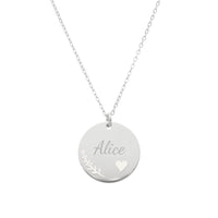 Fio em Prata com 🖤 e Motivos Florais, Personalizável com Nome ou Data - Possibilidade de gravar frente e verso