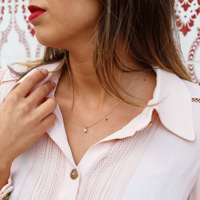 Fio Ponto de Amor em Ouro de 19kl adornado de elegante Zircão em talhe Coração.