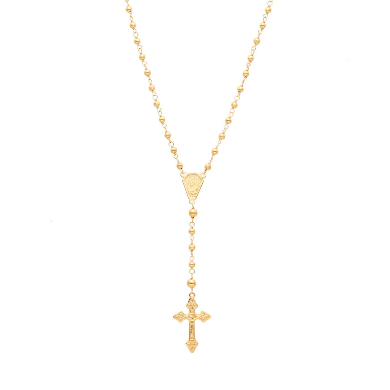 Fio Terço em Ouro 19kl com Nossa Senhora e os Pastorinhos (40cm)