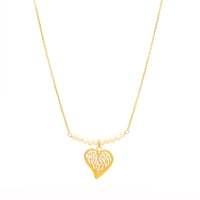 Poético e profundamente simbólico, o fio “Trago-te ao Peito” é uma ode ao amor, à tradição e à alma portuguesa. A peça apresenta uma delicada linha de pérolas brancas, que conduz suavemente até um coração trabalhado em filigrana, rendilhado com detalhe e leveza. O brilho suave das pérolas combina na perfeição com a prata dourada, criando uma joia que parece respirar emoção — como uma melodia de fado guardada junto ao peito.