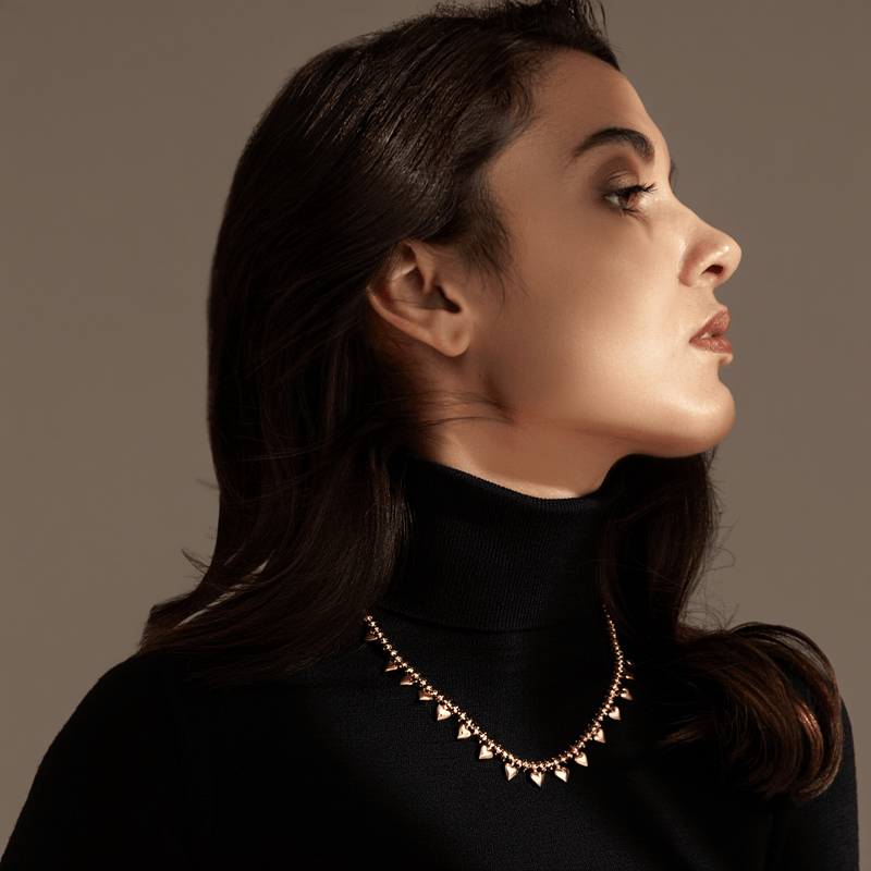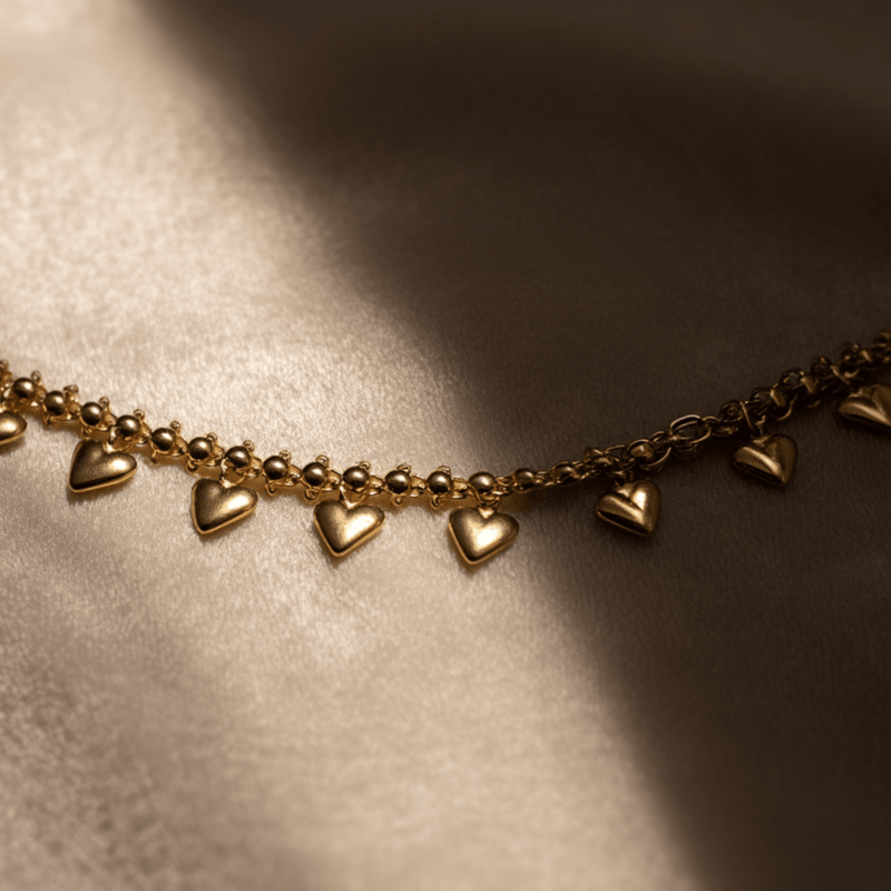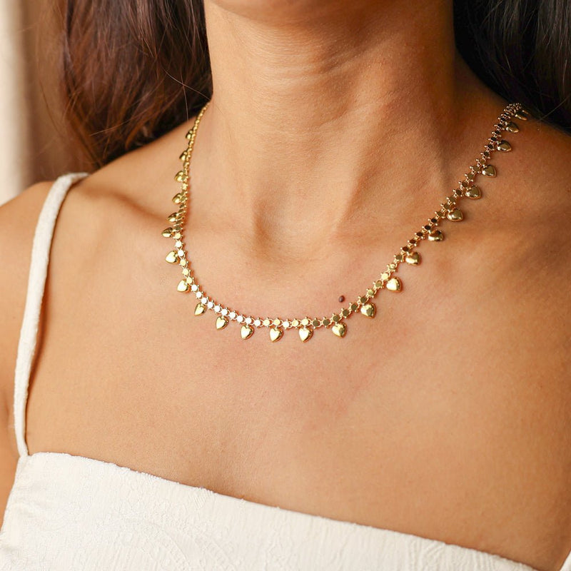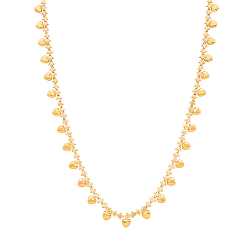 Gargantilha em Ouro de 19.2kl adornada de Corações e Granitos