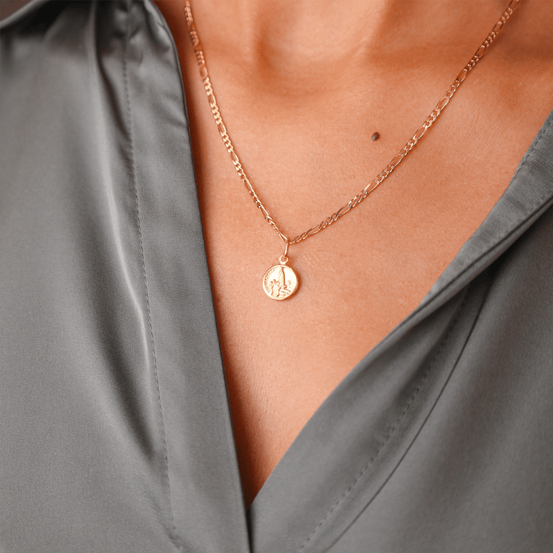 No verso, uma coroa finamente gravada representa a realeza divina e a consagração do coração à fé. Esta medalha religiosa em ouro é ideal para usar diariamente como amuleto de proteção ou oferecer em momentos especiais, como batizados, comunhões ou aniversários. Uma joia intemporal que une espiritualidade, tradição e o brilho eterno do ouro.