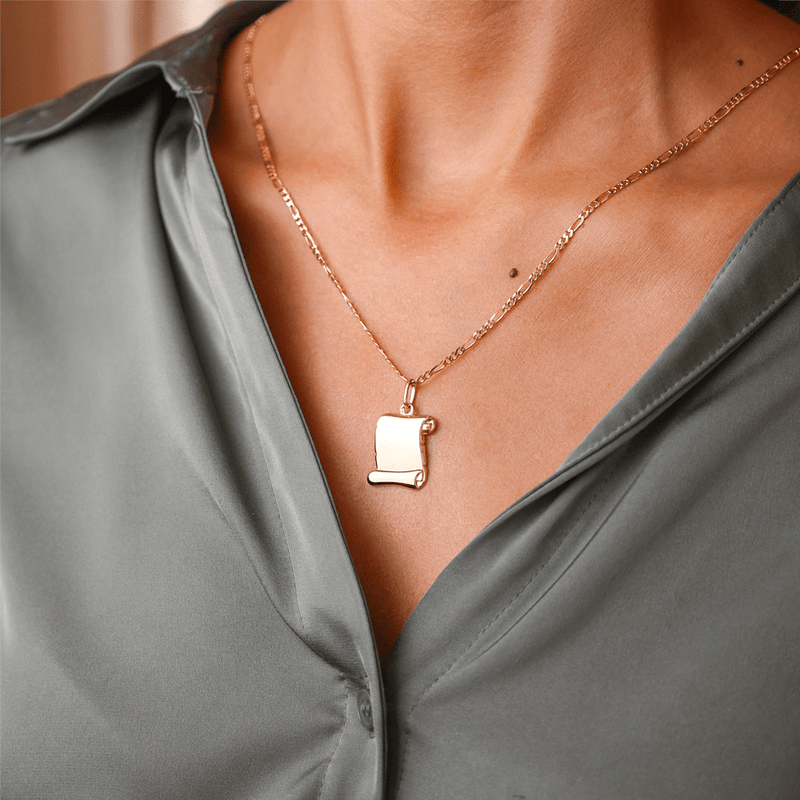 A Medalha Papiro em Ouro de 19.2 quilates é uma peça versátil e elegante, ideal para quem deseja personalizar uma joia com um toque único e pessoal.