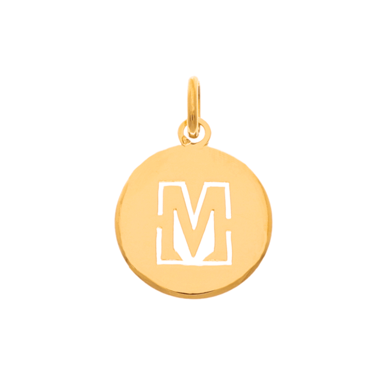 Medalha Redonda em Ouro de 19.2kl com Letra M Recortada