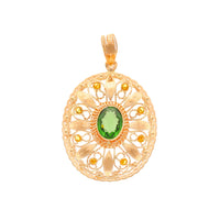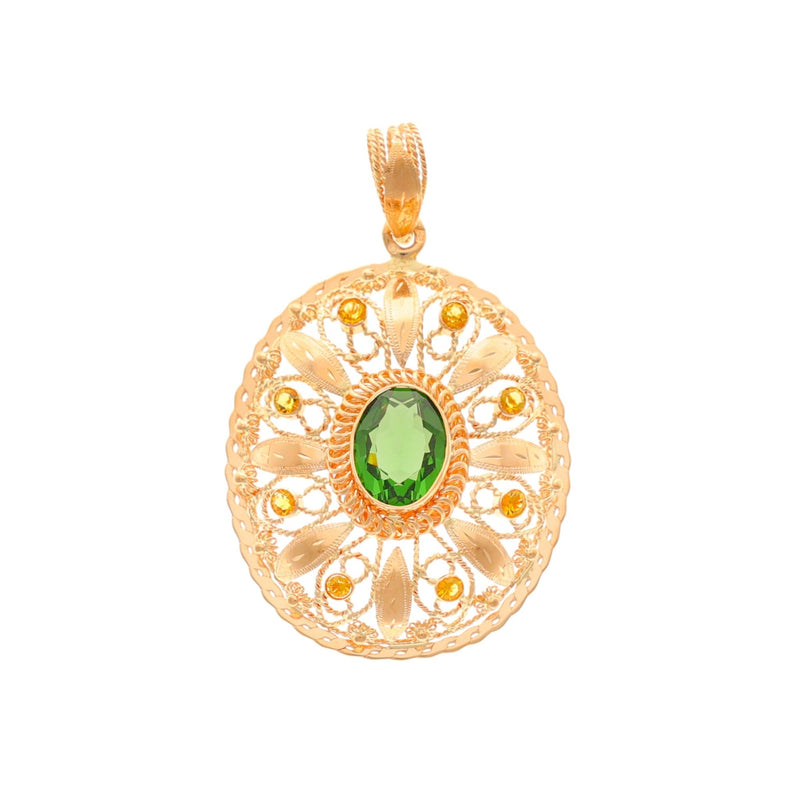Medalha Rendilhada em Ouro de 19kl com Pedra Verde e Pedras Amarelas