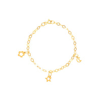 Pulseira Criança com Pendentes Estrela, Lua e Flor em Ouro 19kl (14cm)
