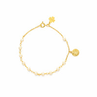 A Pulseira Luz é uma joia delicada e cheia de significado, criada para iluminar o pulso com elegância e espiritualidade. Em prata dourada, apresenta pérolas suaves intercaladas por corrente fina, criando um equilíbrio harmonioso entre brilho, textura e movimento. Como toque final, surge uma medalha pendente de Nossa Senhora, símbolo de proteção, fé e serenidade.