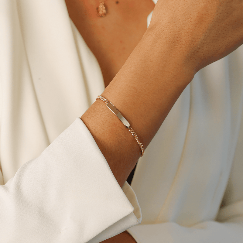 Pulseira Malha Barbela em Ouro de 19,2kl adornada de chapa, ideal para gravar