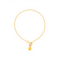 Pulseira Malha Barbela com Coração em Ouro 19kl (14cm)