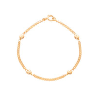 Pulseira Malha Batida em Ouro 19.2kl com Corações (17cm)