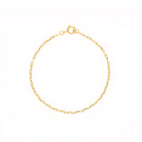 Clássica e intemporal, esta pulseira em ouro 19 quilates de malha cadeado simples é um verdadeiro ícone da joalharia tradicional. O seu design limpo e elegante destaca o entrelaçado perfeito dos elos, criando uma malha uniforme e fluida que reflete o brilho natural do ouro com cada movimento. Uma peça discreta, mas cheia de presença, que simboliza ligação, confiança e durabilidade.