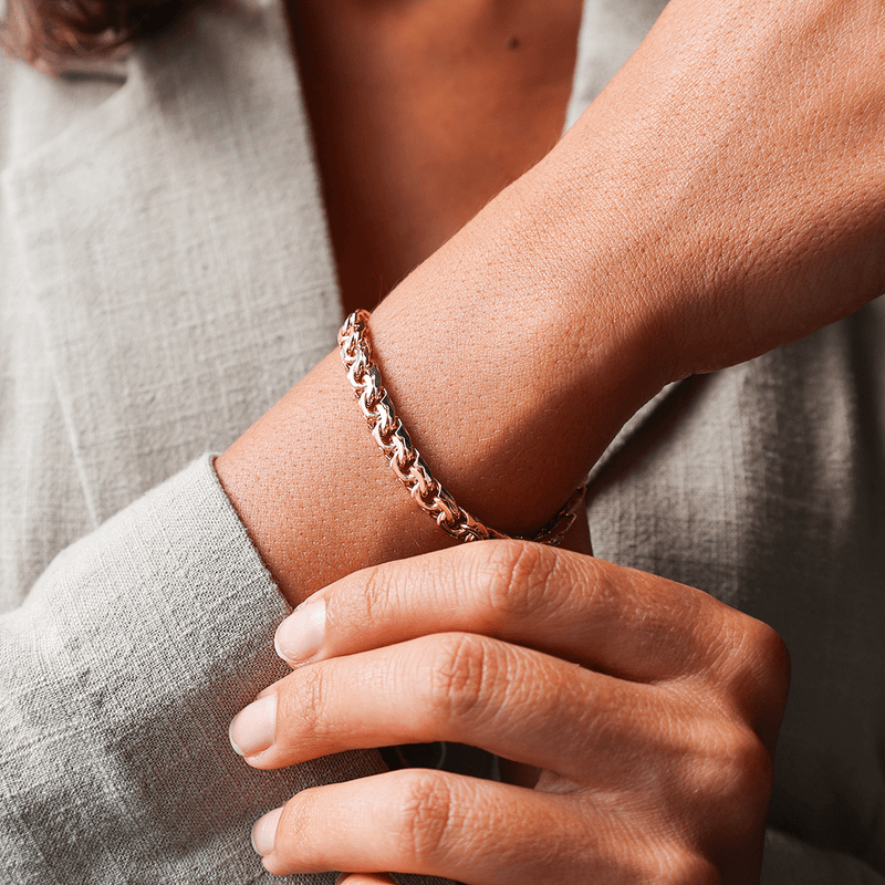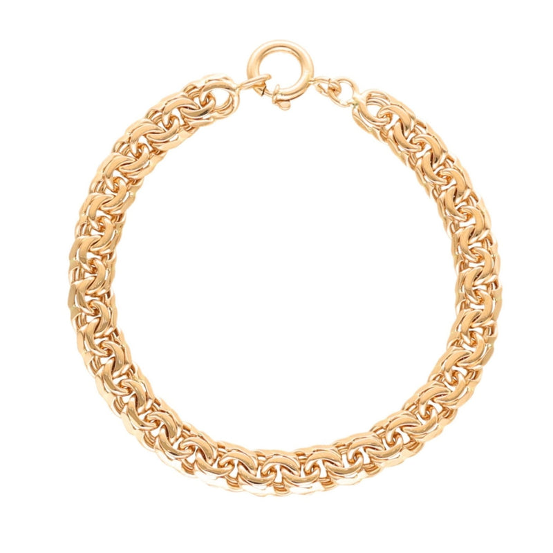 Sólida e confortável, esta pulseira é ideal para quem aprecia joias de qualidade com carácter. A largura de 7mm proporciona um visual imponente, realçando o brilho natural do ouro de alta qualidade. Perfeita para usar sozinha como uma declaração de estilo ou combinada com outras peças, esta pulseira robusta é uma escolha elegante para quem busca uma joia atemporal que reflita personalidade e refinamento.