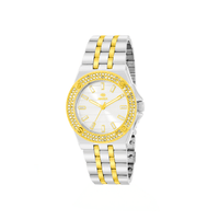 O Relógio Lunyx é o equilíbrio perfeito entre sofisticação e versatilidade. O seu mostrador branco, de brilho suave e intemporal, é emoldurado por um bisel com zircónias brancas, que acrescenta luminosidade e requinte em cada detalhe. Os índices em corte baguette e os acabamentos bicolores em dourado e prateado criam um contraste harmonioso, ideal para quem procura elegância em todas as ocasiões.