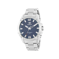 Com um diâmetro de 44mm, o Momentum exibe uma presença imponente no pulso, destacada pelo seu visor azul sofisticado, que transmite profundidade e exclusividade. A bracelete em aço inoxidável oferece conforto e resistência, enquanto o movimento de quartzo garante precisão absoluta em qualquer situação.