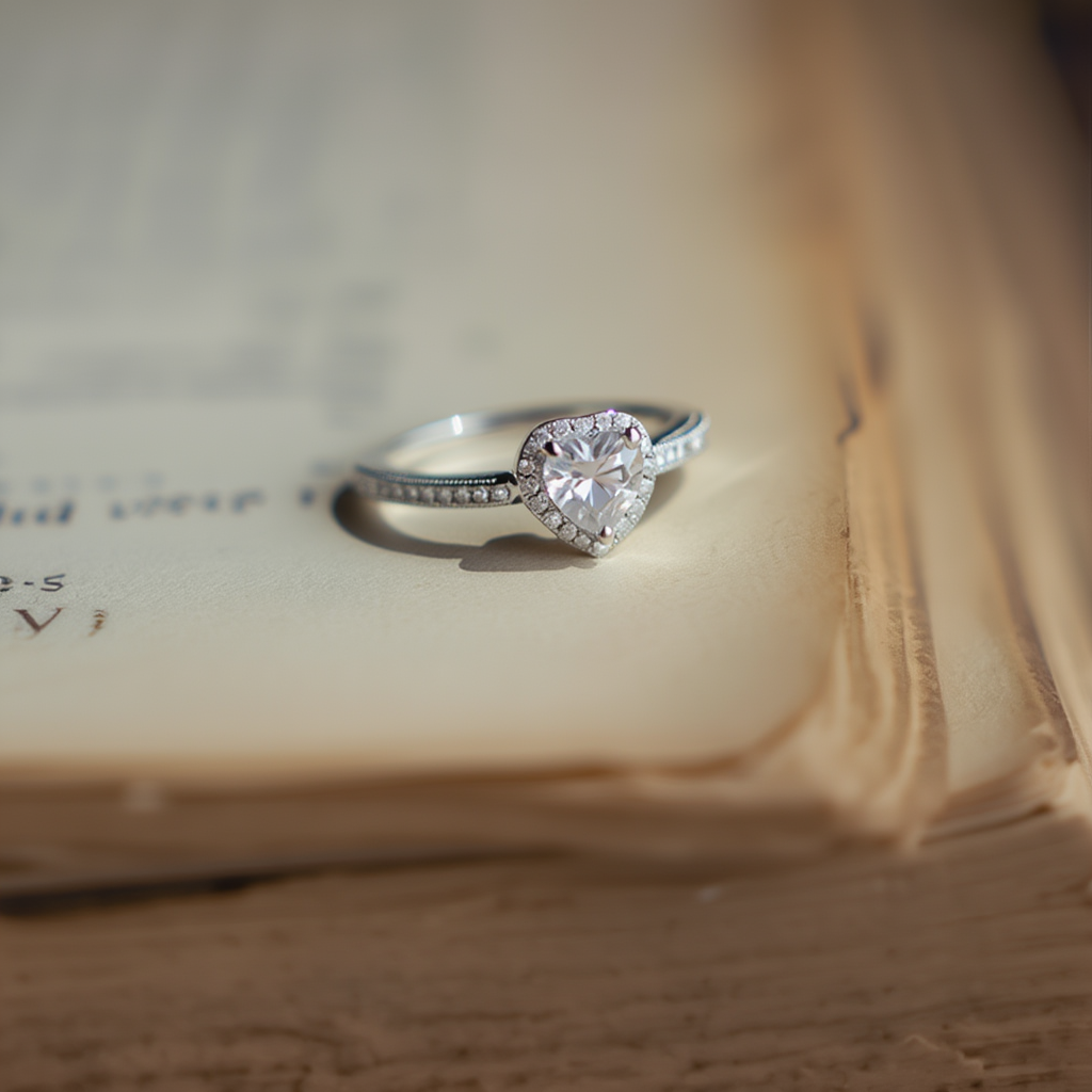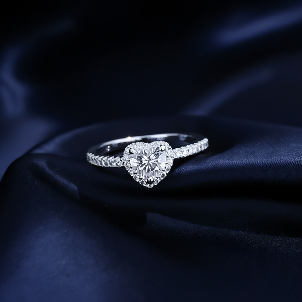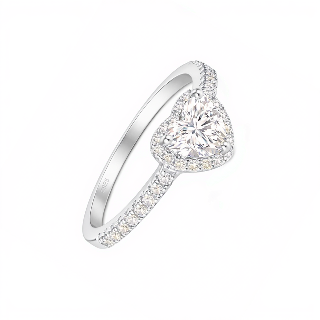 Anel em Prata com Zircão em Talhe Coração e Zircónias Cravejadas