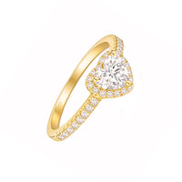Anel em Prata Dourada com Zircão em Talhe Coração e Zircónias Cravejadas